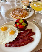 Choice of waffle, buttermilk pancakes, or French toast, two organic eggs*, choice of meat, and breakfast side